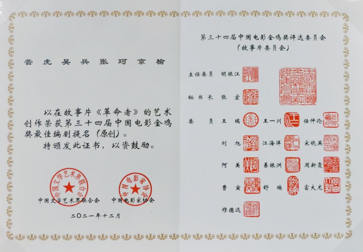 (张珂获得金鸡奖最佳编剧提名)