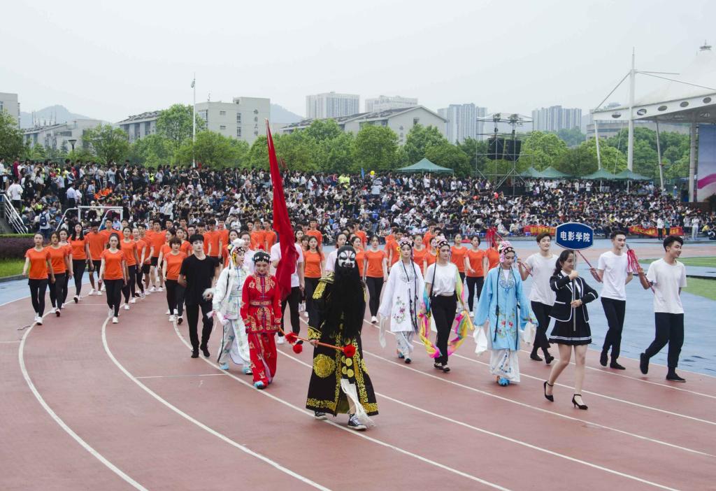 虎溪校区圆满举行。青春如火,超越自我,各个学院的学生代表组成入场式表演方阵,在运动场上展现充满活力的精神状态。