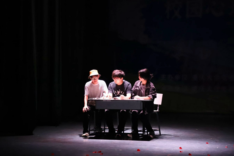 小橘灯心理协会带来的情景剧《鼠妹》演绎了网络暴力的危害,在真与假的交界、虚与实的边境,耳听、眼见都不一定为实,面对无法分辨的信息,可以成为一个沉默者,但绝不能成为推波助澜的人。在本科生院的同学们带来的《五彩斑斓的白》中,主角赵娇从自我怀疑的阴影中一步步走出,最终在找寻自我价值的过程中逐渐觉醒。能源与动力工程学院同学们带来的《缘起星辰》讲述了大学生万星在进入大学后,对自己的学业和生活感到迷茫,通过与室友、老师和社团成员的沟通以及自身勇敢的尝试,逐渐感知自我、接纳自我。