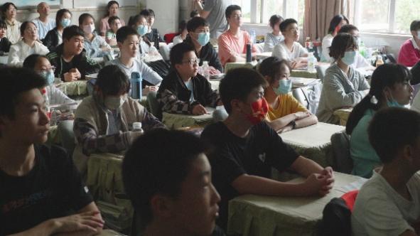 晚上18:00,随着晚自习铃声响起,全班同学和班主任郑老师用热烈的掌声欢迎了影视教育志愿服务队,影视赏评课程正式开始,研究生志愿者为同学们放映了法国悬疑短片《调音师》,然后将同学们分成两组进行短片赏评课和表演课。