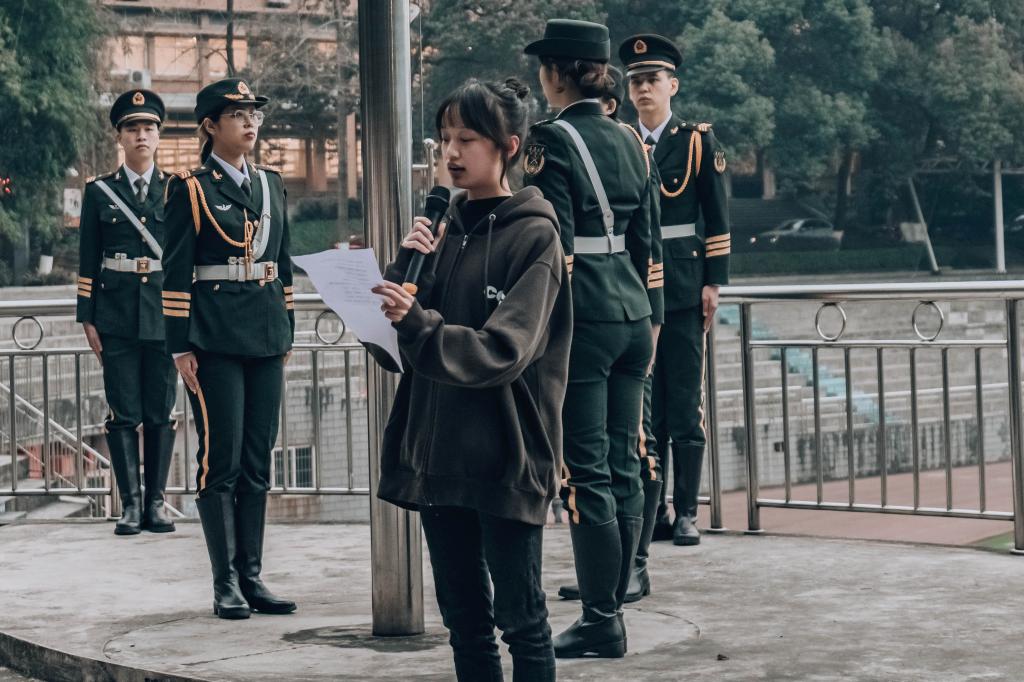 师生们的爱国之心也伴着红旗一同升起并凝聚升华。红旗下,重大学子目光坚毅,身姿挺拔,歌声铿锵有力,唱出了对于祖国的热爱,展现了深切浓厚的爱国热忱和昂扬向上的青春风貌。