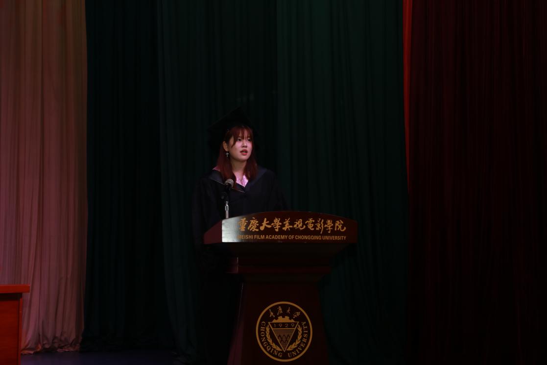 文学系副教授吴申珅老师作为教师代表发言。她衷心感谢同学们出现在自己的职业生涯当中,愿这段师生缘分可以给彼此的人生旅途增添温暖而明亮的色彩。她希望同学们不负青春不负韶华不负时代,并勉励同学们“宁在一思进,莫在一思停。”。