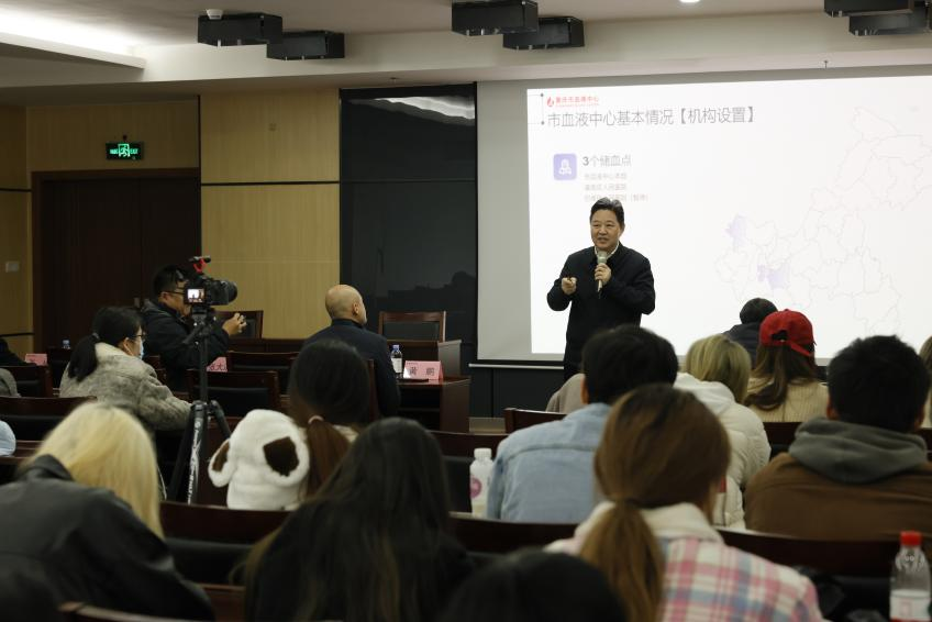 接着,重庆市血液中心主任徐永柱与副主任田耘博先后为师生授课,讲述了市血液中心的发展历史和无偿献血的科普知识。